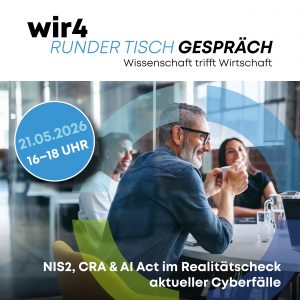 Hier geht es zur Anmeldung: Unternehmensabend trifft wir4 Runder Tisch: NIS2, CRA & AI Act im Realitätscheck aktueller Cyberfälle